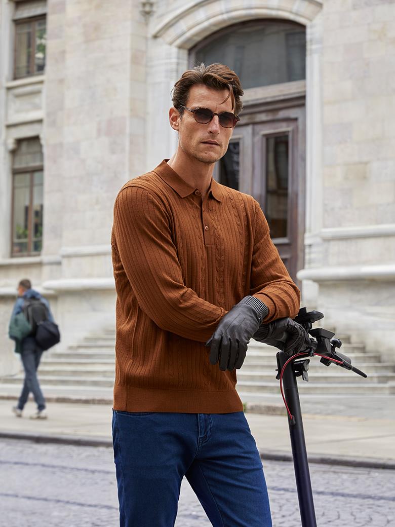 Polo Yaka Desenli Kahve Yün Kazak (FW-23217 V5)