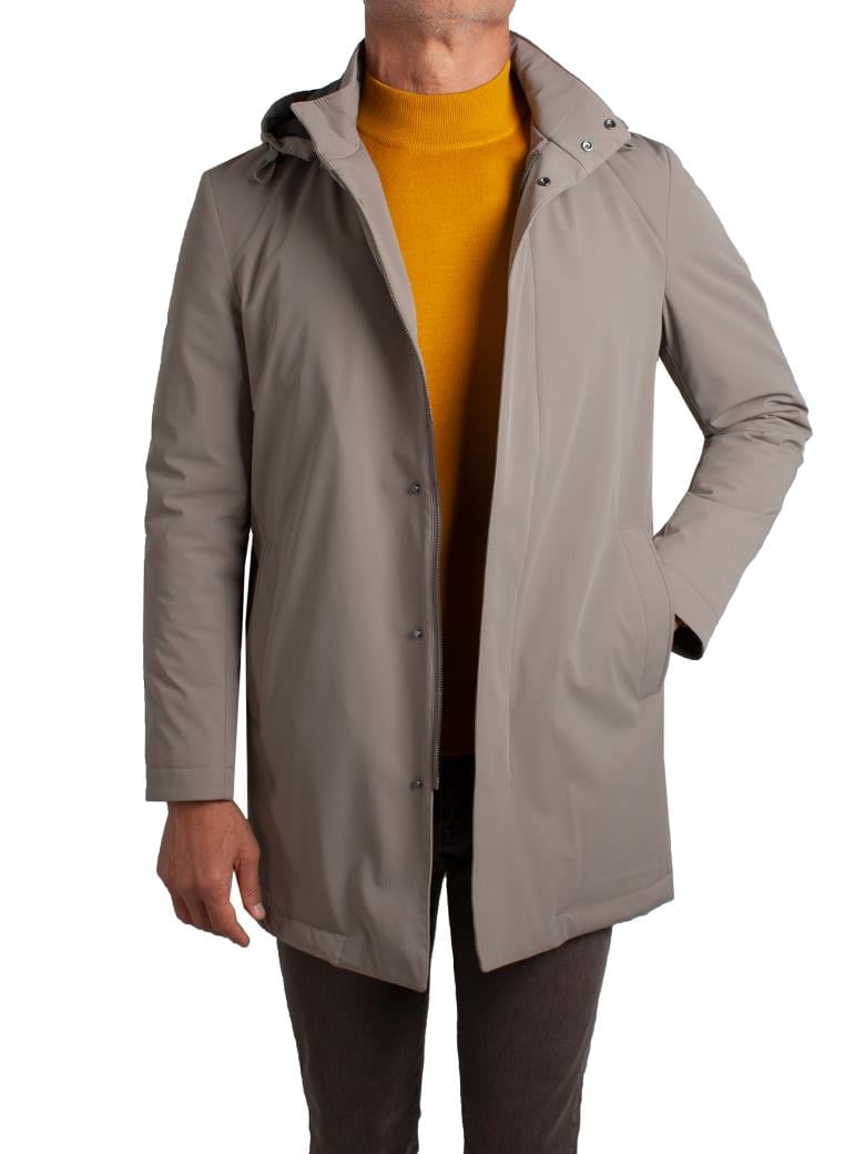 Standart Fit Su Geçirmez Kapüşonlu Bej Hafif Trenç Mont