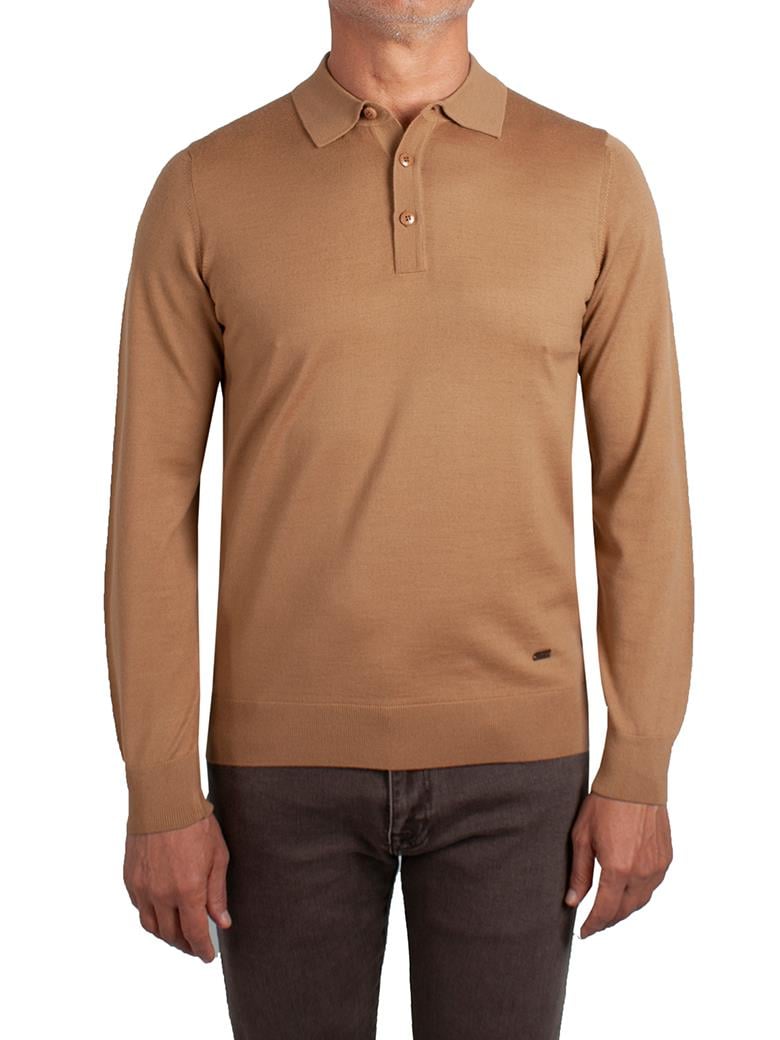 Standart Fit Normal Kesim Polo Yaka Koyu Bej Triko Yün Kazak (FW-1958 V54)