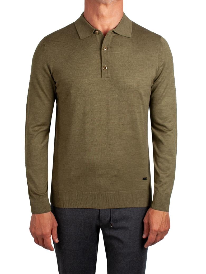 Standart Fit Normal Kesim Polo Yaka Yeşil Triko Yün Kazak (FW-1958 V57)