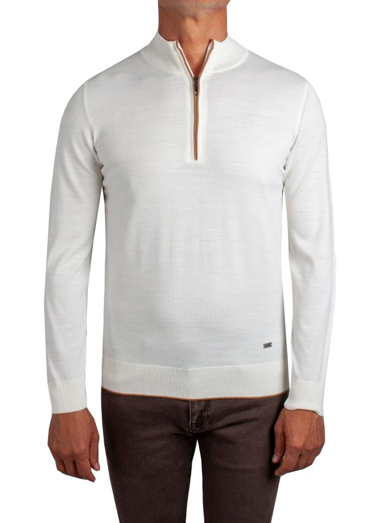 Yarım Balıkçı Fermuarlı Ekru Triko Yün Kazak (FW-2522 V3)