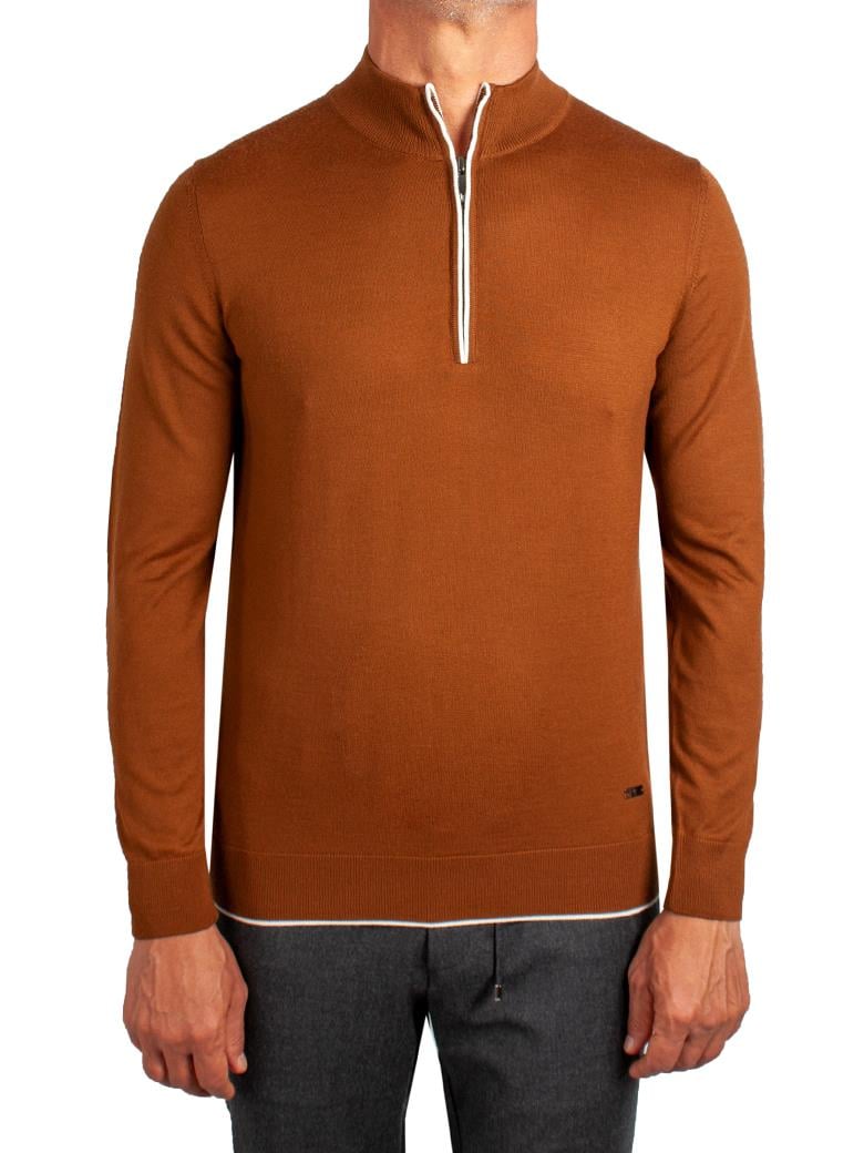 Yarım Balıkçı Fermuarlı Kahve Triko Yün Kazak (FW-2522 V6)