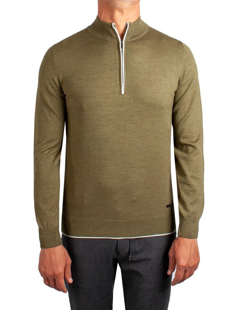 Yarım Balıkçı Fermuarlı Yeşil Triko Yün Kazak (FW-2522 V7)